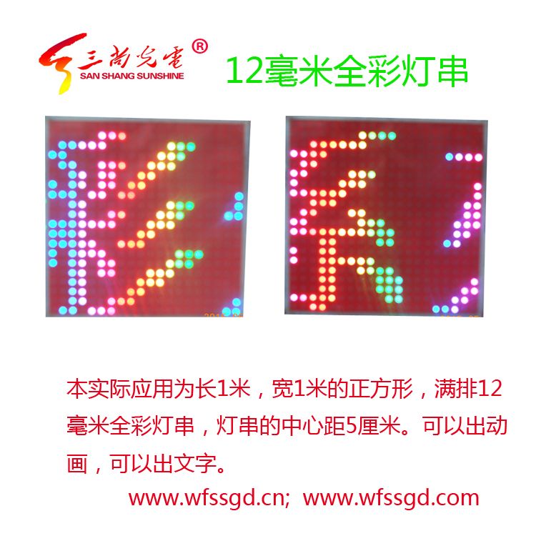 2. DC5V或DC12V供電,使用安全。全彩燈串可以依據(jù)用戶要求群控變換色彩。