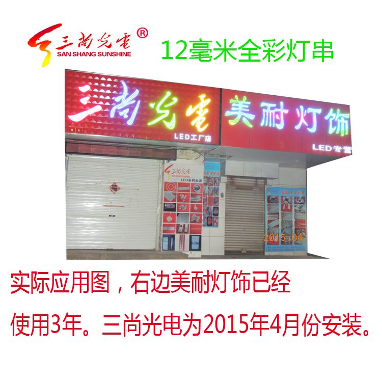 2. DC5V或DC12V供電,使用安全。全彩燈串可以依據(jù)用戶要求群控變換色彩。