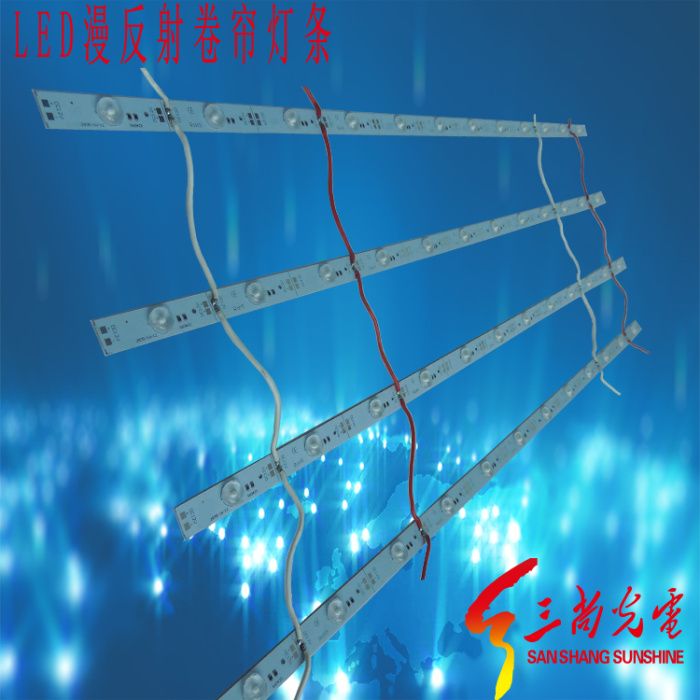 1.漫反射卷簾式燈條具有成本較低,且亮度高,亮度均勻,易安裝,適用于5-20厘米的單面燈箱。DC 12V低壓供電,安全可靠,免維護